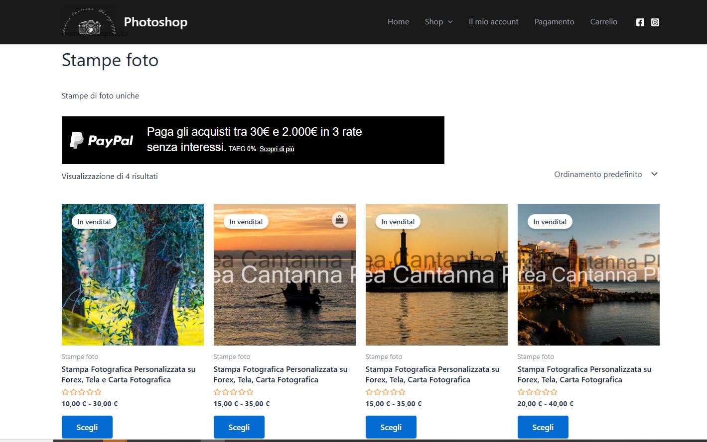 Presentiamo lo shopping online di un fotografo chevende le sue opere stampate su vari supporti o su oggetti www.tuttoshop.eu